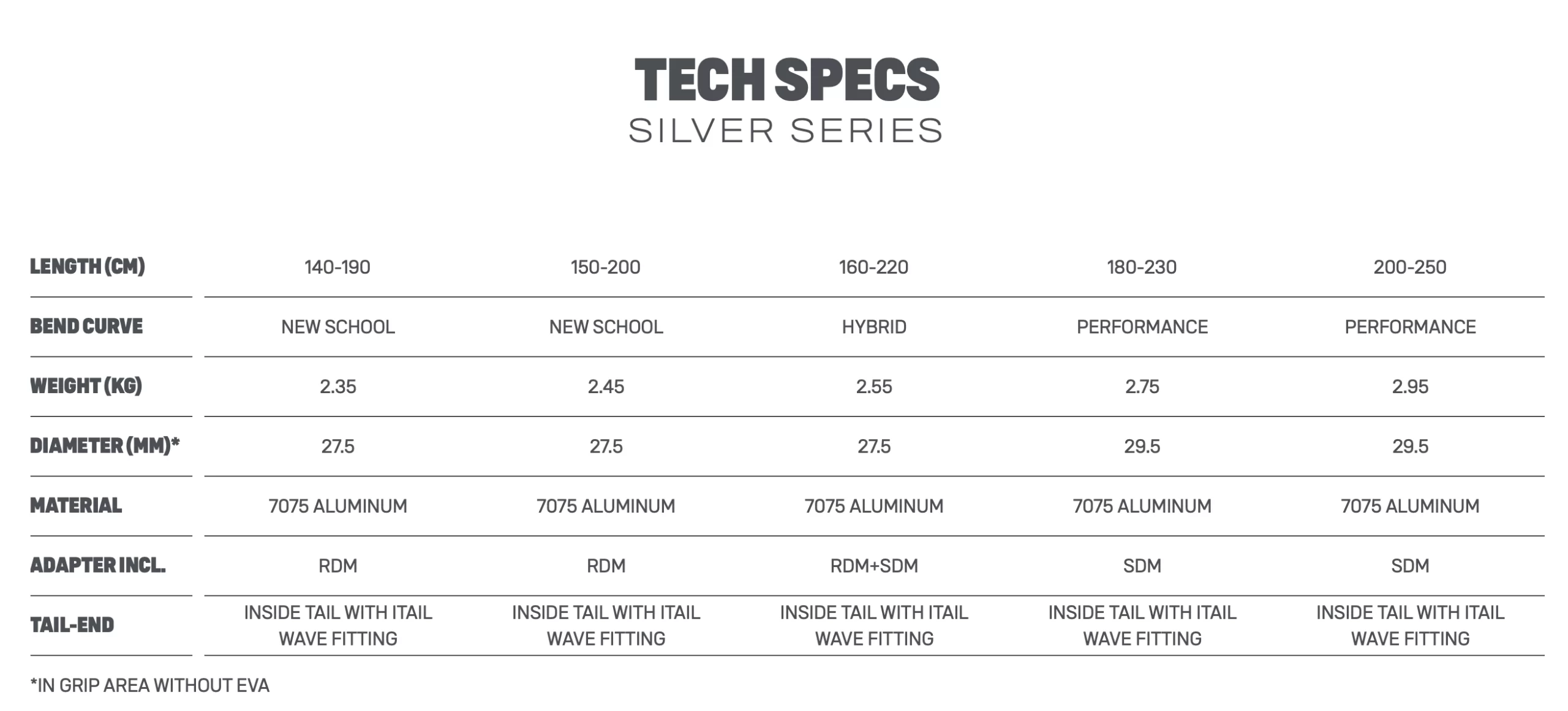 The wave-oriented SILVER models consist of three segments and have a one-piece aluminium rear arch in addition to the intelligent iFRONT 2.0 front end. Together with the RDM tubes at 28 mm, this creates the ideal combination of stiffness and comfort. The bend curve applies an even pull on the mast- and backhand. The lengths 180 and 200 cm with performance bend curve are specifically for freeride sails and a 30 mm tube diameter to ensure maximum stiffness.