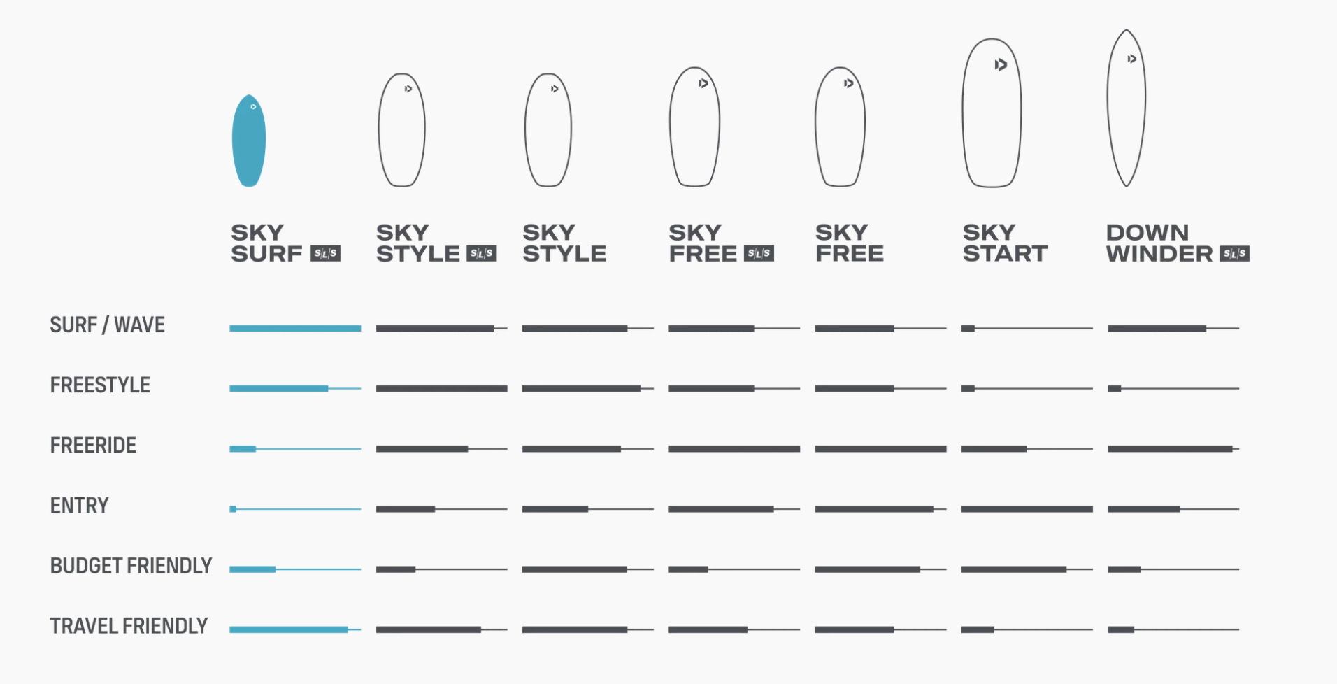 - Large to medium size shapes for entry to intermediate level wingers looking for the best possible board to get started and progress from the lightest breeze to medium winds
