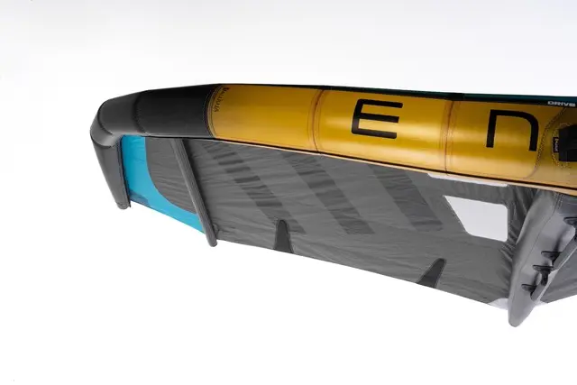 The Ensis Drive Wing 2025. Designed to excel in the lightest winds, the ENSIS DRIVE features three struts and a hybrid leading edge made from ALUULA Gold™ and ALUULA Aeris™, creating a wing that is both featherlight and rigid, that delivers outstanding lift and power. The compact design and increased dihedral keep the wingtips clear of the water while riding, while the high-lift profile positions the power upfront where it’s needed. You’ll be amazed at how easy the DRIVE is to handle. Hit the water with confidence and be the first on the foil. The DRIVE is the only light-wind wing you’ll need in your quiver.