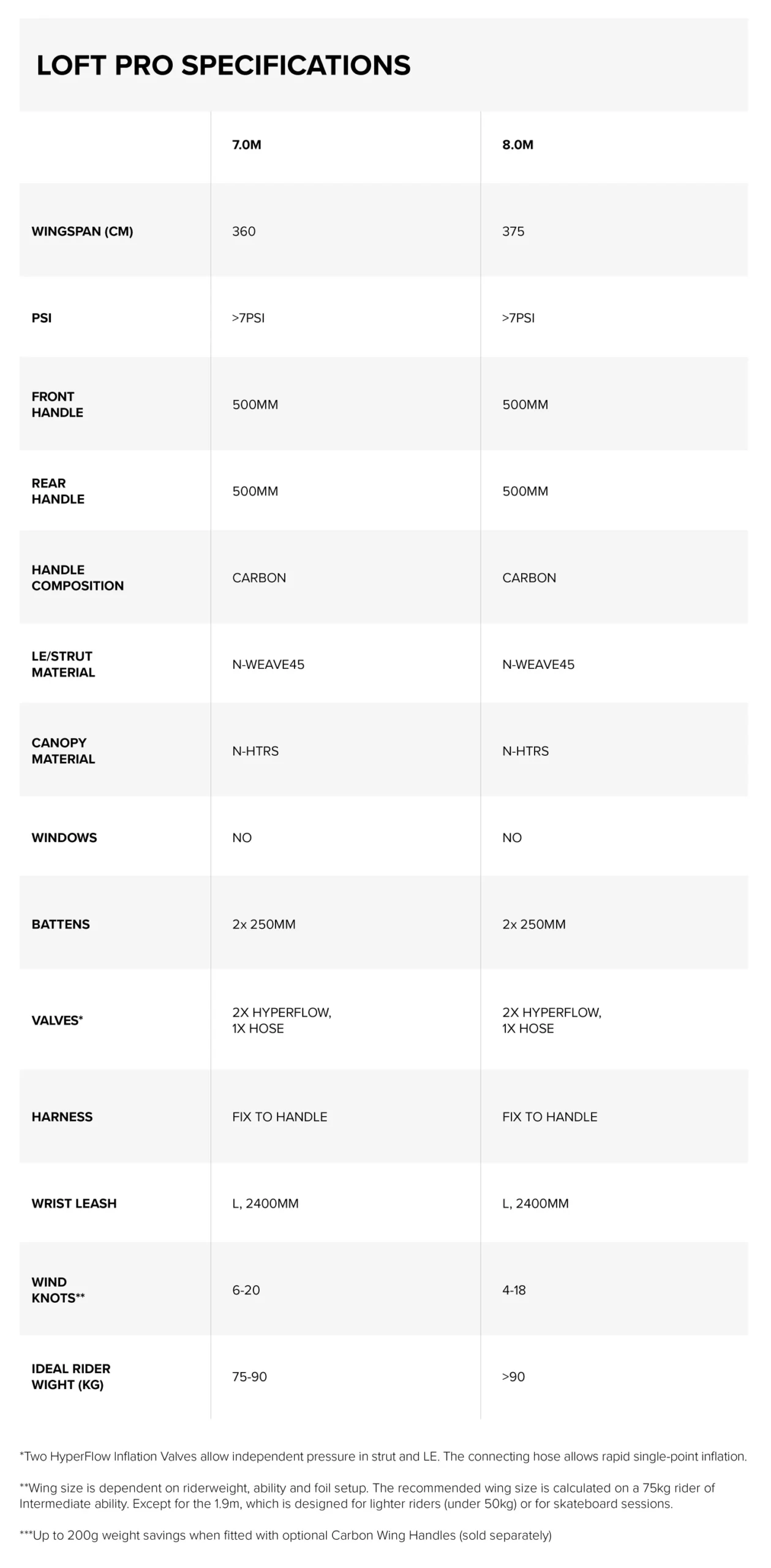 The all new North Loft Pro Wing has the power to unlock borderline sessions, lift you up instantly in the lightest wind and keep you on the foil for longer.Its deep profile and ultra-stiff frame provide the most efficient power delivery per m2, carrying you through the lulls and converting the slightest puff into powerful forward momentum. Engineered to feel as light as possible, the 2024 Loft Pro is an evolution of the Nova Light Wind, featuring carbon handles and powered by a new N-Weave45 airframe for a faster, stiffer wing with more instant response. Reduced seams/segments in the leading edge also help to reduce weight, and a reduced LE diameter makes the wing lighter and more agile. Even with the smaller diameter, the airframe still exceeds the stiffness of its predecessor.