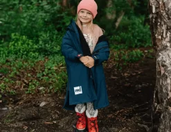 Its technical 8k/3k waterproof PFC-free DWR fabric provides the ultimate protection for the great outdoors, with the navy-coloured front-zip robe doubling up as a smart yet robust school coat.