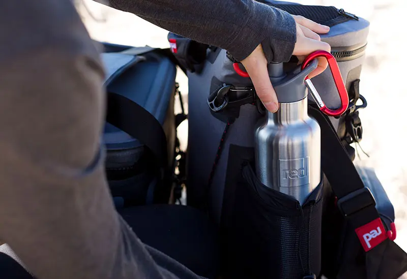 With a 750ml capacity you can take 3 cups of your favourite coffee with you or enjoy a cool glass of wine once you reach your destination. The bottle has been designed to custom fit into the side pockets of our deck bag or you can attach to your board using a carabiner.