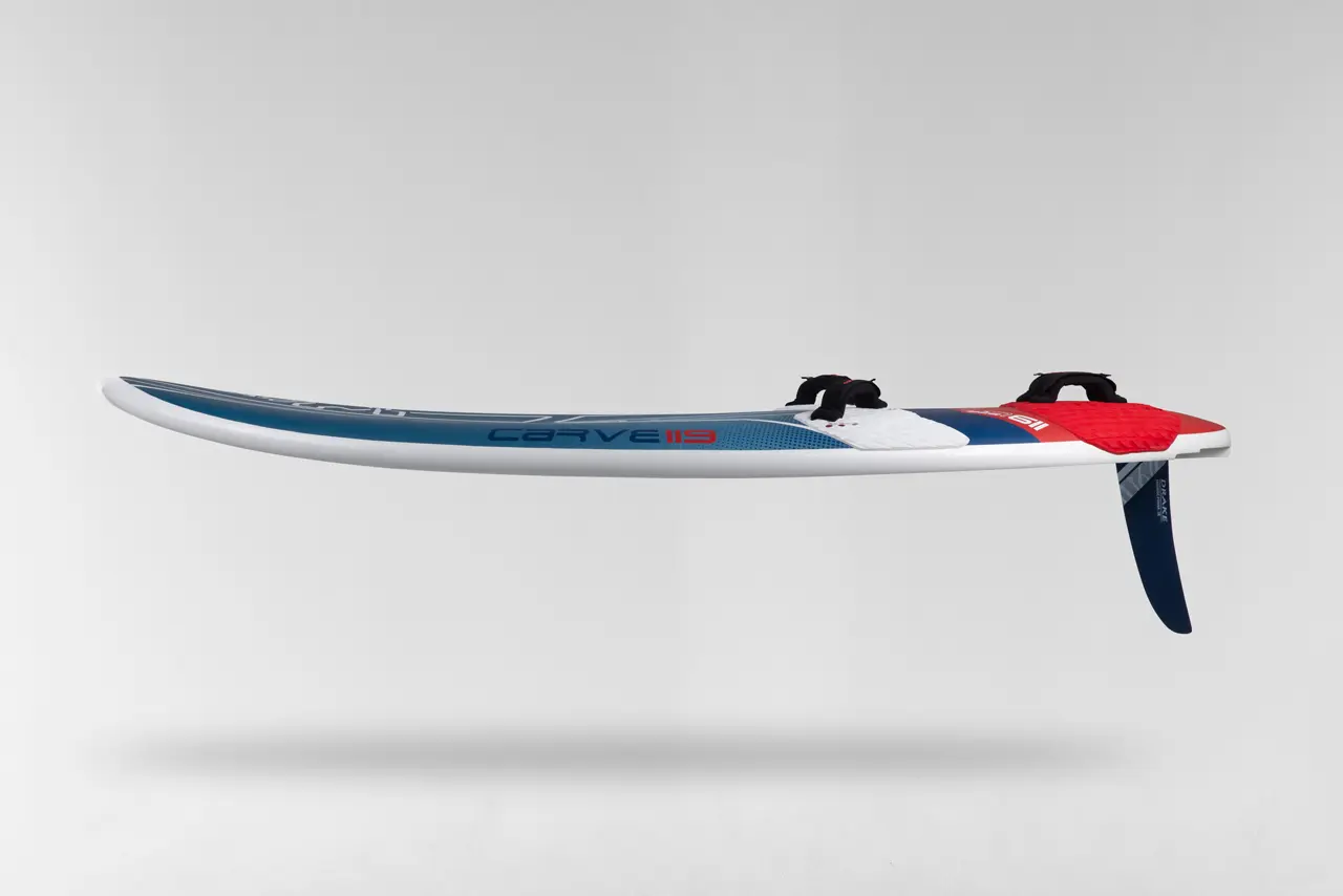 The exciting 2024 Carves deliver big on effortless planing, autopilot jibing and a controlled ride in any conditions. We never felt so accomplished about a board range. Each board individually shaped for the intended conditions and skill level. On the larger sizes, a long flat section makes for extra easy passive planing and a smooth ride to let you find the footstraps effortlessly. Midrange sizes carve like a small board, yet switching your stance and flipping the sail you have the confidence of a bigger board, thanks to a combination of thinned out rails towards the tail and thicker forward rails. The small sizes deliver a true sporty feel with higher top end speed and that extra bit of control you’ll need for windsurfing confidently in strong wind.