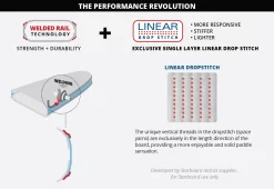 - The Heat Welded rails create a complete airtight, mechanically bonded seam without the risk of glue weakening over time. Making the board stronger and last longer.